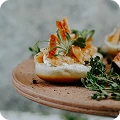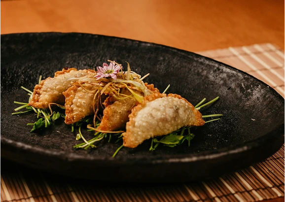32 AEDSlightly fried pastry, chicken, vegetable, cheese, yuzu mayo